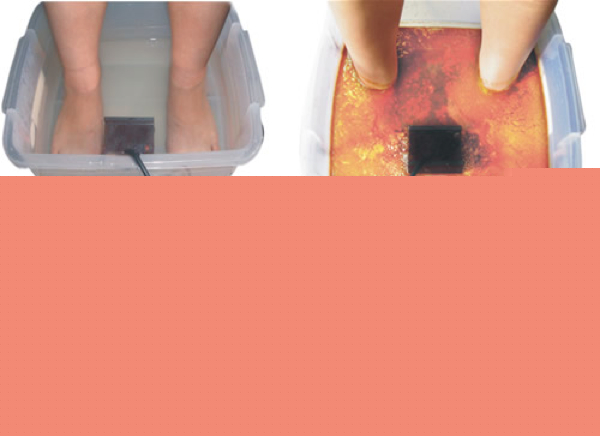 The Ionic foot bath has a similar claim. You soak your feet in a tub of salt water with an electromagnetic current running through it. This current of energy is supposed to effect the positive and negative ions in the body and pull toxins out of the 4000 pores in your feet. The water will change color depending on what is being leached out.