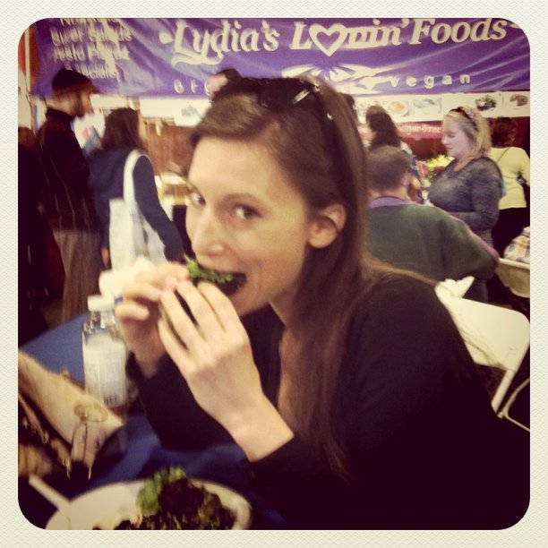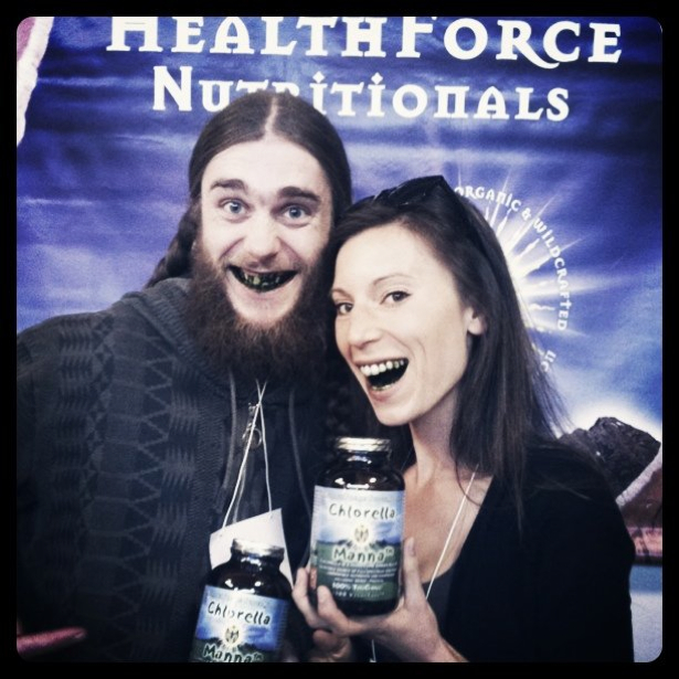 I danced over to the HealthForce Nutritional‘s booth and caught up with some buddies of mine. Samples of their vitamineral green superfood powder and warrior protein were flowing. Chlorella tabs were on the scene as you can see with our green teeth. I religiously use their VitaMineral greens and Mint Maca in my morning smoothies. Divine!