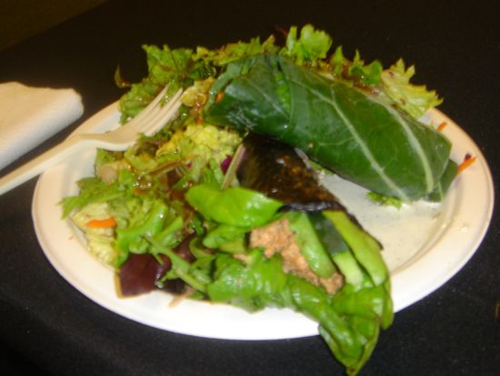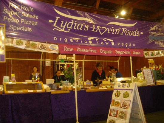 You might have seen Lydia’s raw and organic line at a health store near you. I love her granola and breakfast cereals. The spirulina raw bar rocks my world too. I was stoked to see a full kitchen in the booth. I chose the nori and chard wrap combo with nut pate and side salad. Yumm…