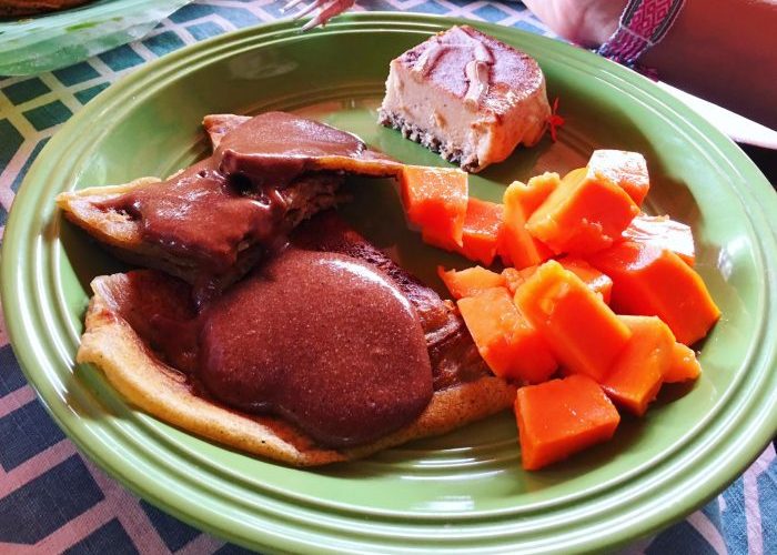 Banana Coconut Pancakes With Cinnamon Cacao Icing