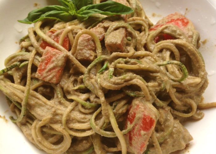 Raw Vegan Zucchini Pasta With Alfredo Sauce